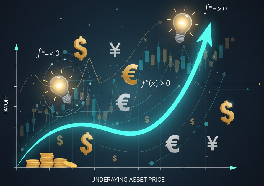 If you should invest in ten of these convex options, then probably one will deliver over a 20x return, another maybe a 10x return and eight will deliver no return. You will still have made, in this example, a 3x return on your total investment.